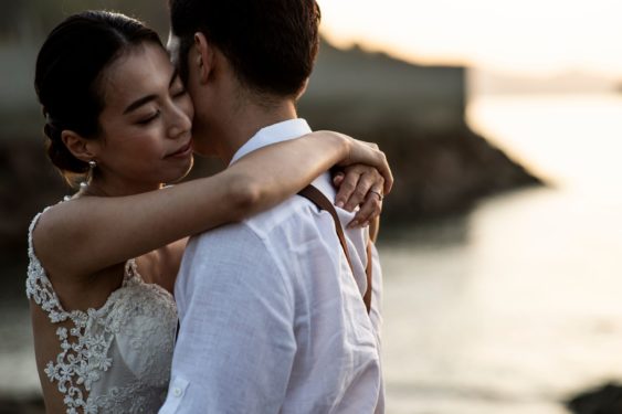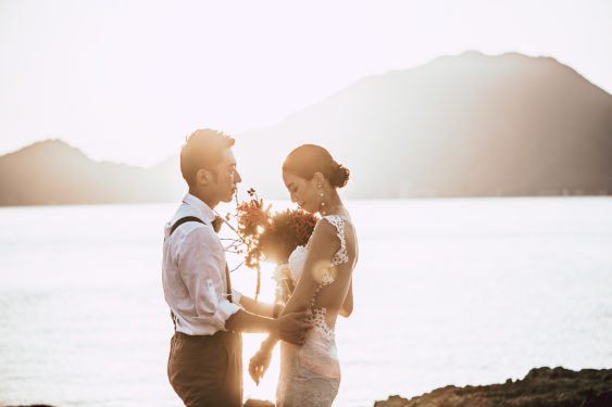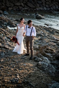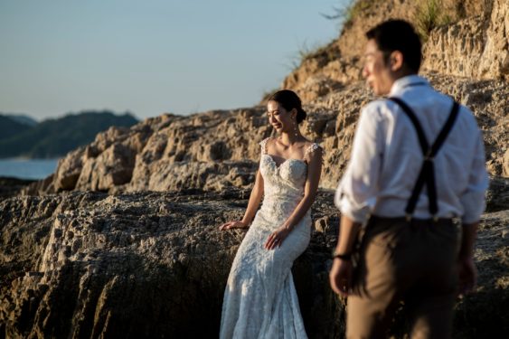海や島のあちこちのスポットでのフォトツアーのラストは岩場でのサンセットフォト。