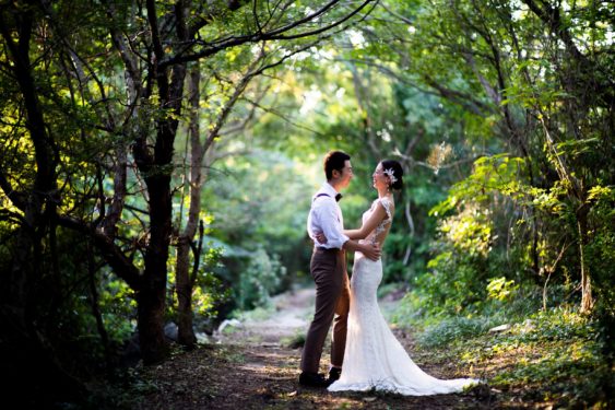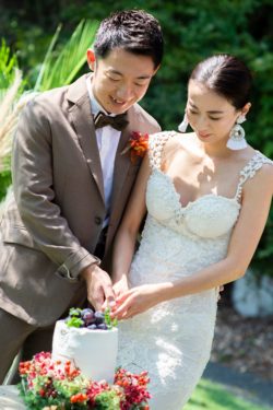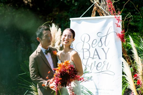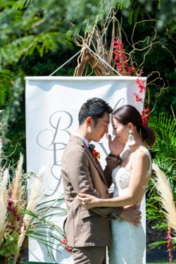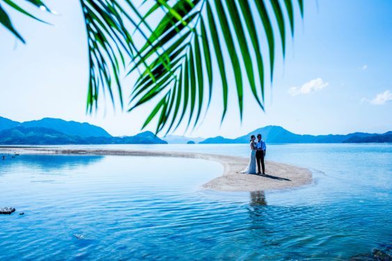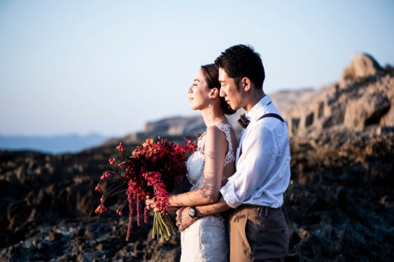 島中のロケハン、レジーナからガリアラハブのドレスを取り寄せ、ドローン撮影、ケーキやブーケ、一軒家を貸し切りセレモニーのコーディネート。